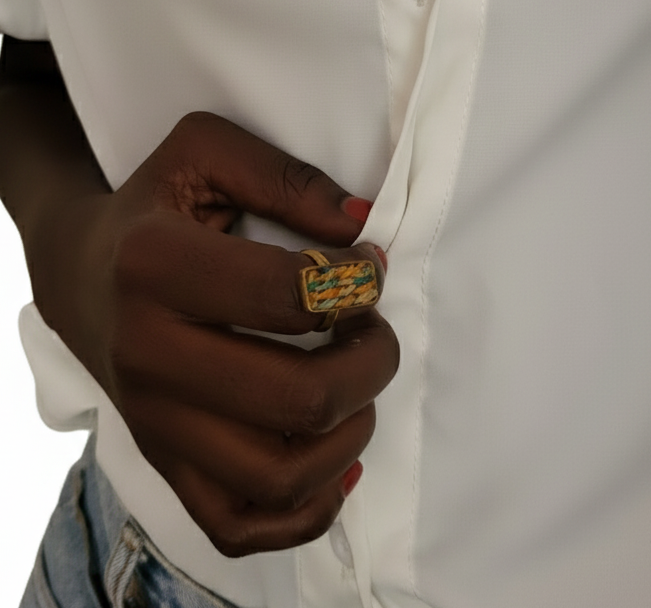 The Dhot Ring is proof that subtlety can still make a statement. Handcrafted from upcycled materials, its rectangular form gives it a modern and architectural edge.
