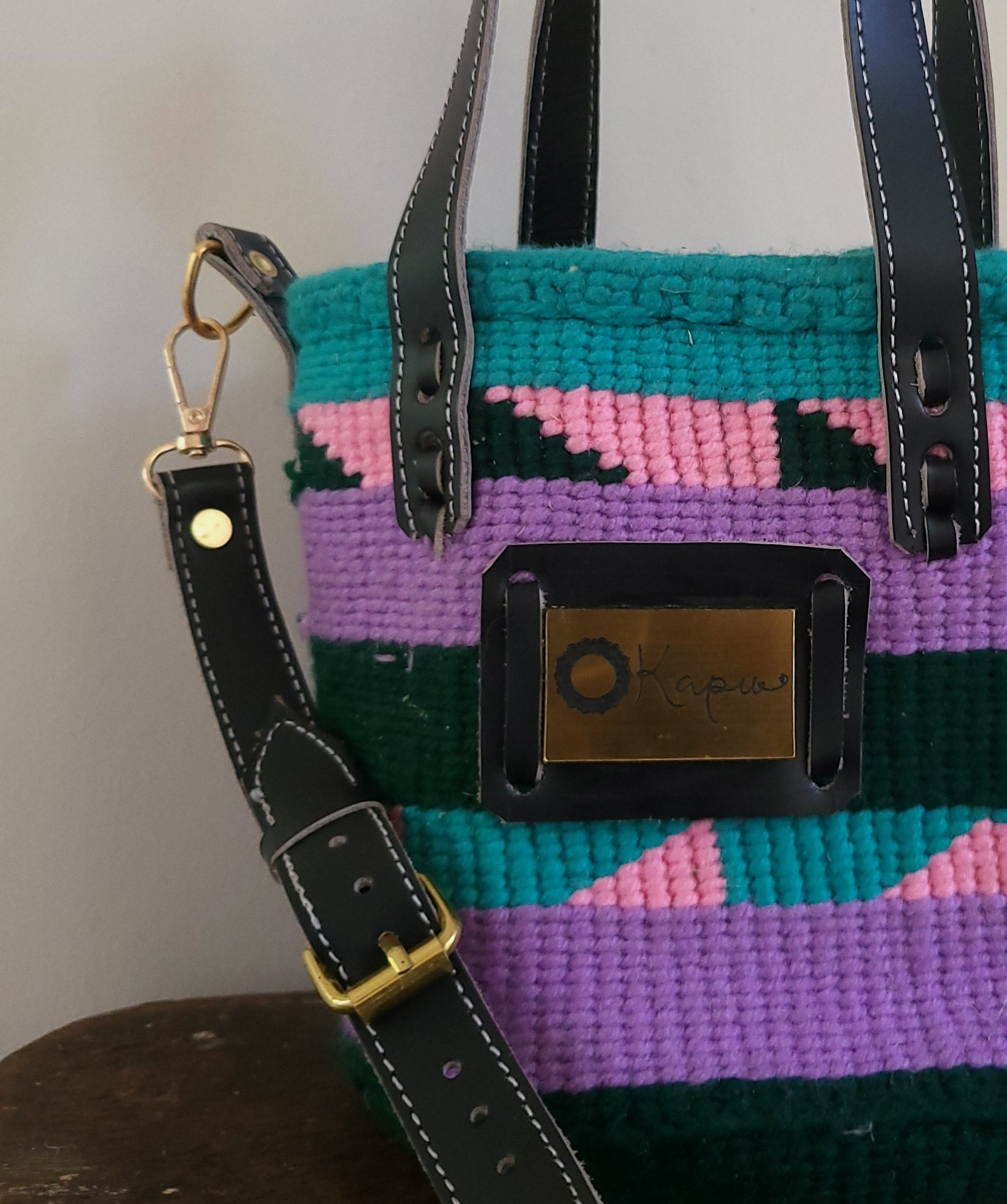 The Musilu Top-handle kiondo is a dual carry kiondo, made by weaving yarn with sisal. Its a stunning  arrangement of color & can be used to complement or contrast your overall outfit for an eccentric look. Its leather trimmings include a zip closure, an adjustable strap to carry it over your shoulder or across your body or remove it and easily grab the top handles with your hands. Due to its small size, this makes for an excellent day out bag.